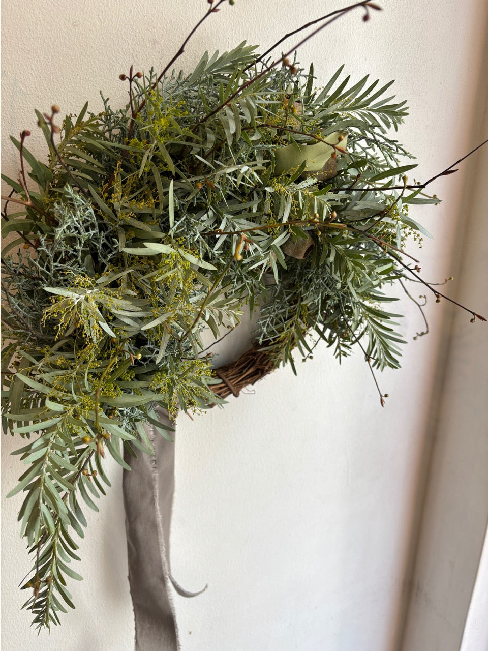 シルバーグリーンのアカシア「ブルーブッシュ」をたっぷり使った