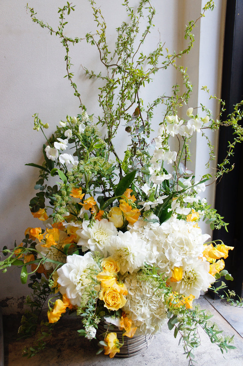 枝物やグリーンなども使用してボリューム感たっぷりにお作り致します。